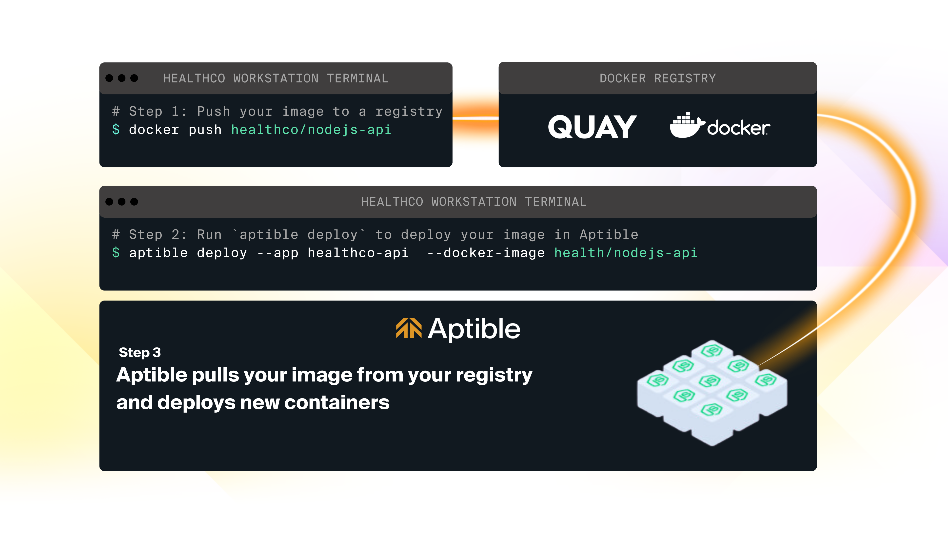 If you need absolute control over your Docker image’s build, Aptible lets you deploy directly from a Docker image. Additionally, Aptible’s Terraform Provider currently only supports Direct Docker Image Deployment - so this is a benefit to using this deployment method. The workflow for Direct Docker Image Deploy is as follows:- You build your Docker image locally or in a CI platform