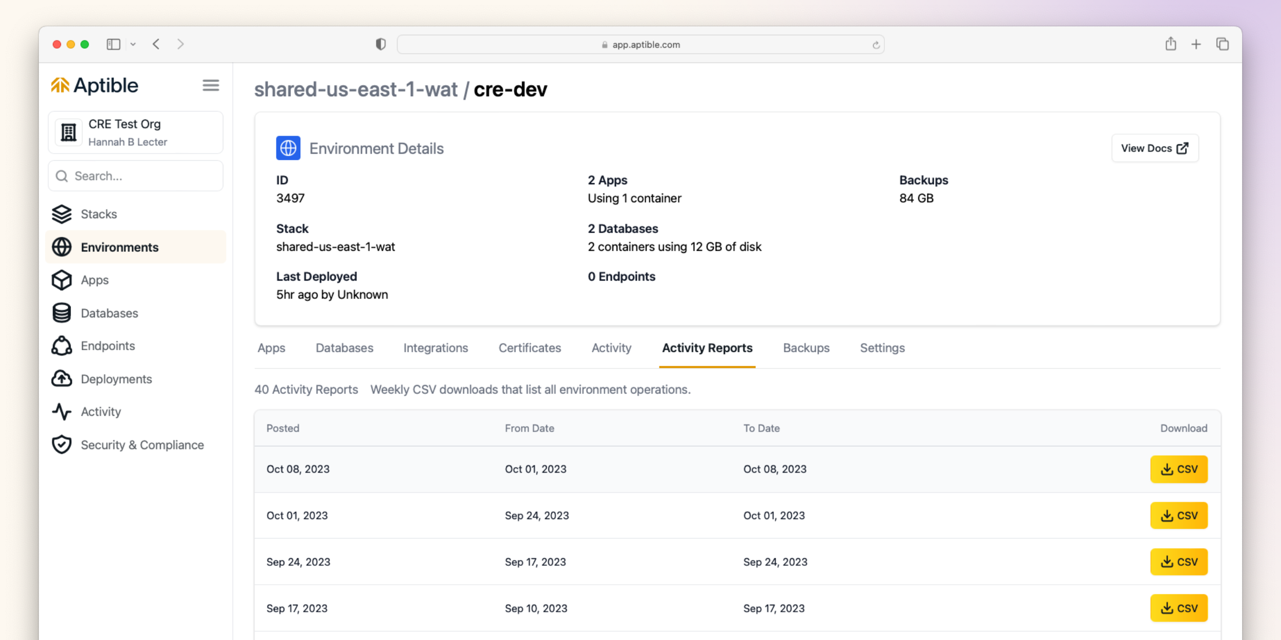 📘 Tip: Troubleshooting with our team? Link the Aptible Support team to the logs for the operation you are having trouble with.