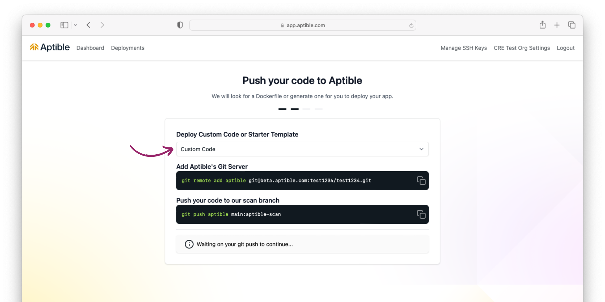 Push your code to Aptible